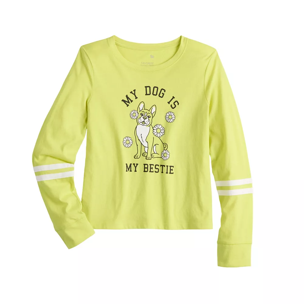 Your little lady will look so stylish in this girls’ long-sleeve tee from SO.