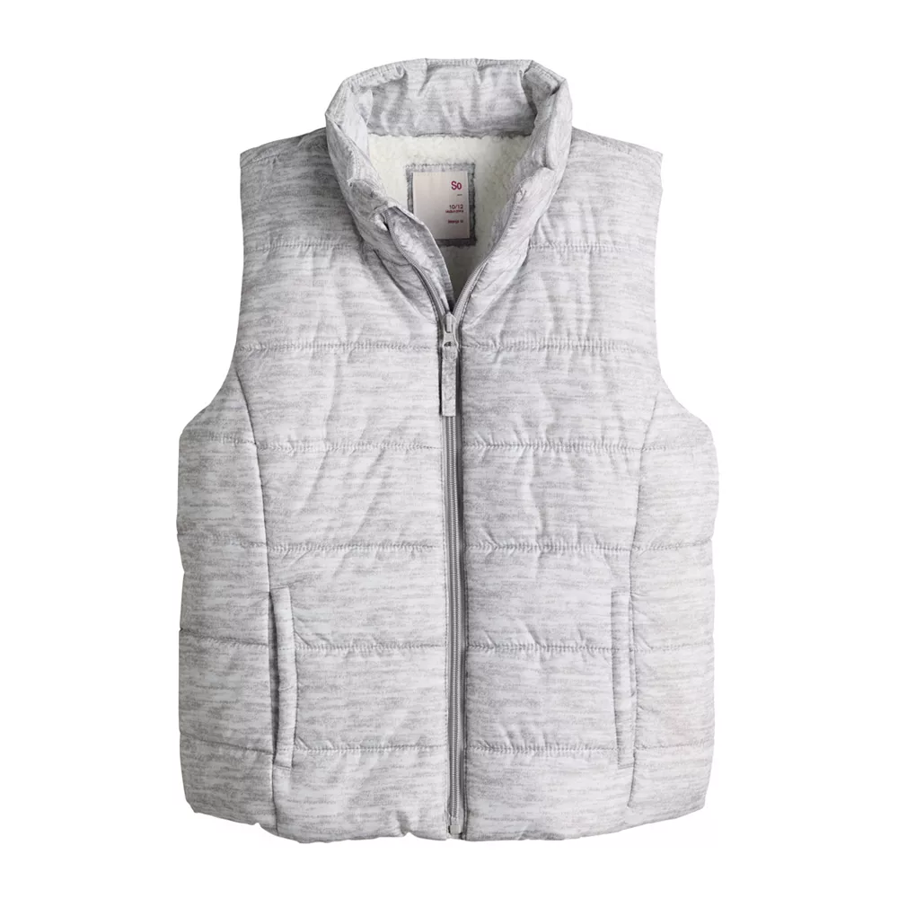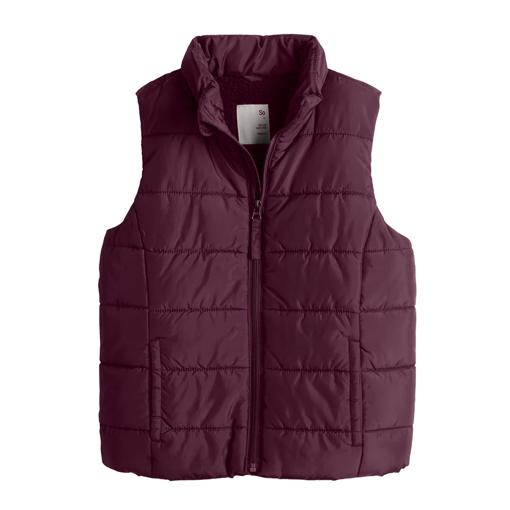 SO defines transitional weather style with this girls’ SO quilted puffer vest.