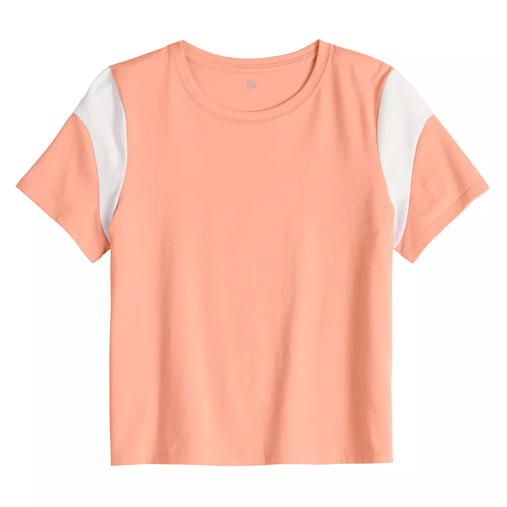She’ll love the classically casual style of this girls’ SO Favorite Colorblock Boxy tee.