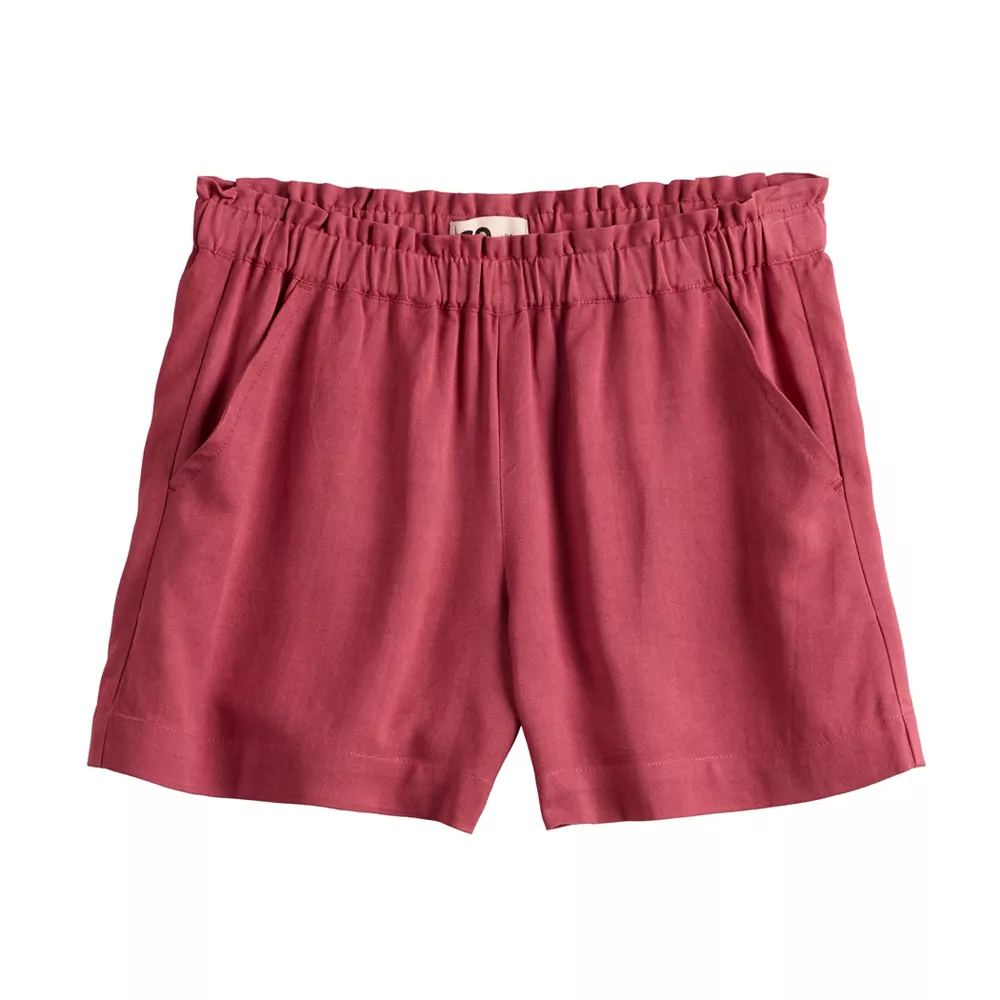 Trendy style and all-day comfort abound on these girls’ SO paperbag waist pull-on shorts.