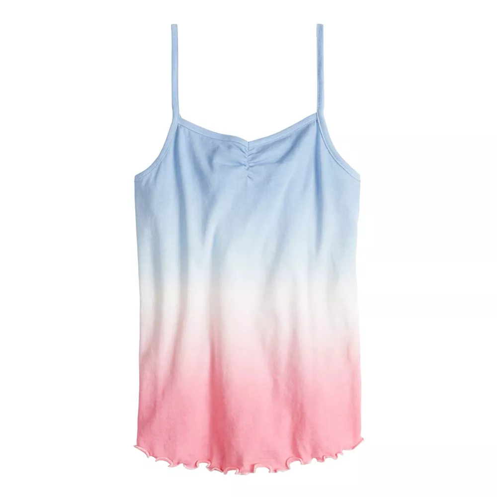 She’ll love showing off her patriotic look with this girls’ red, white and blue scarf tank top from SO.
