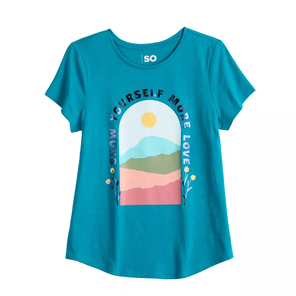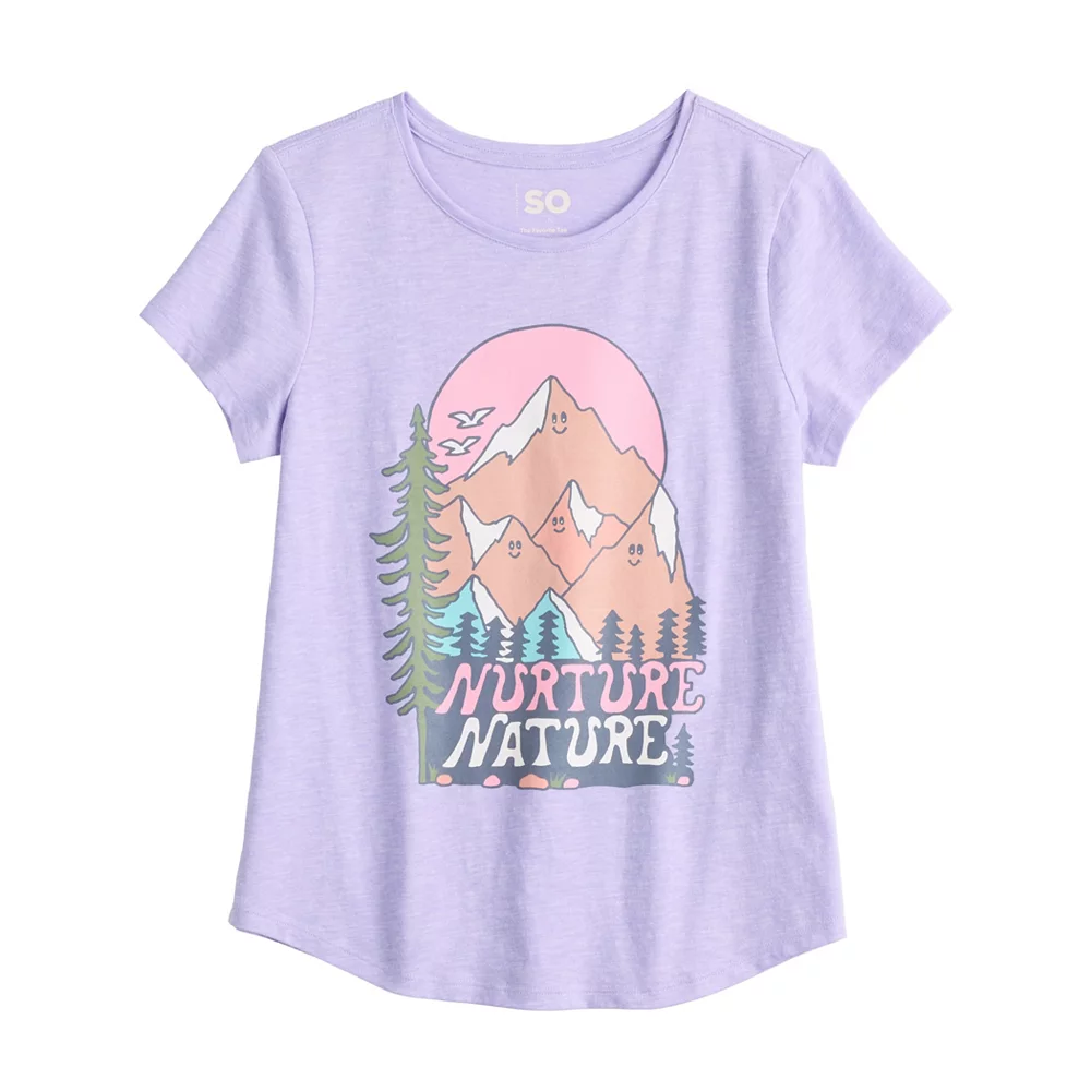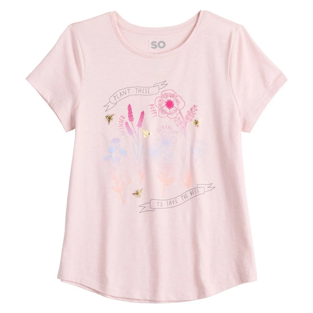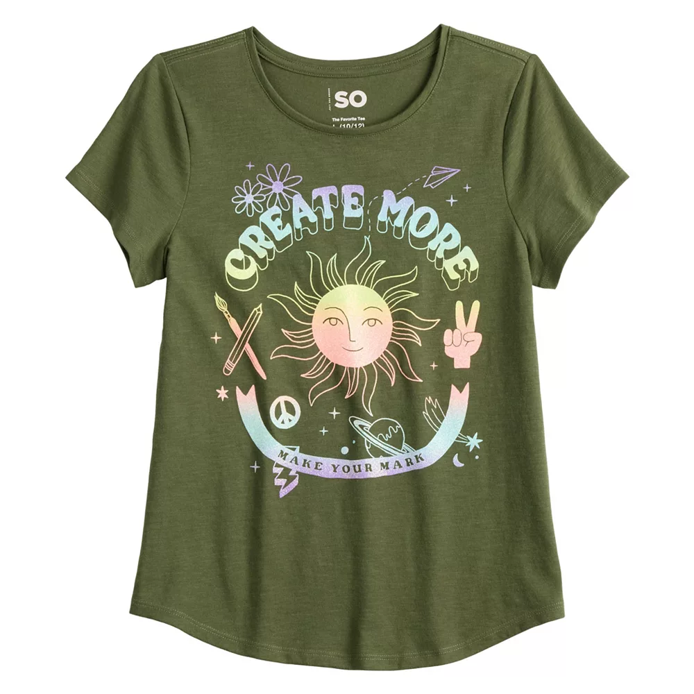 Give her a fun look for casual warm-weather days with this girls’ graphic tee from SO.