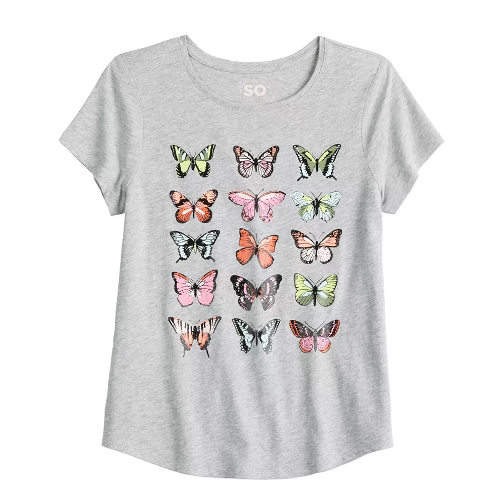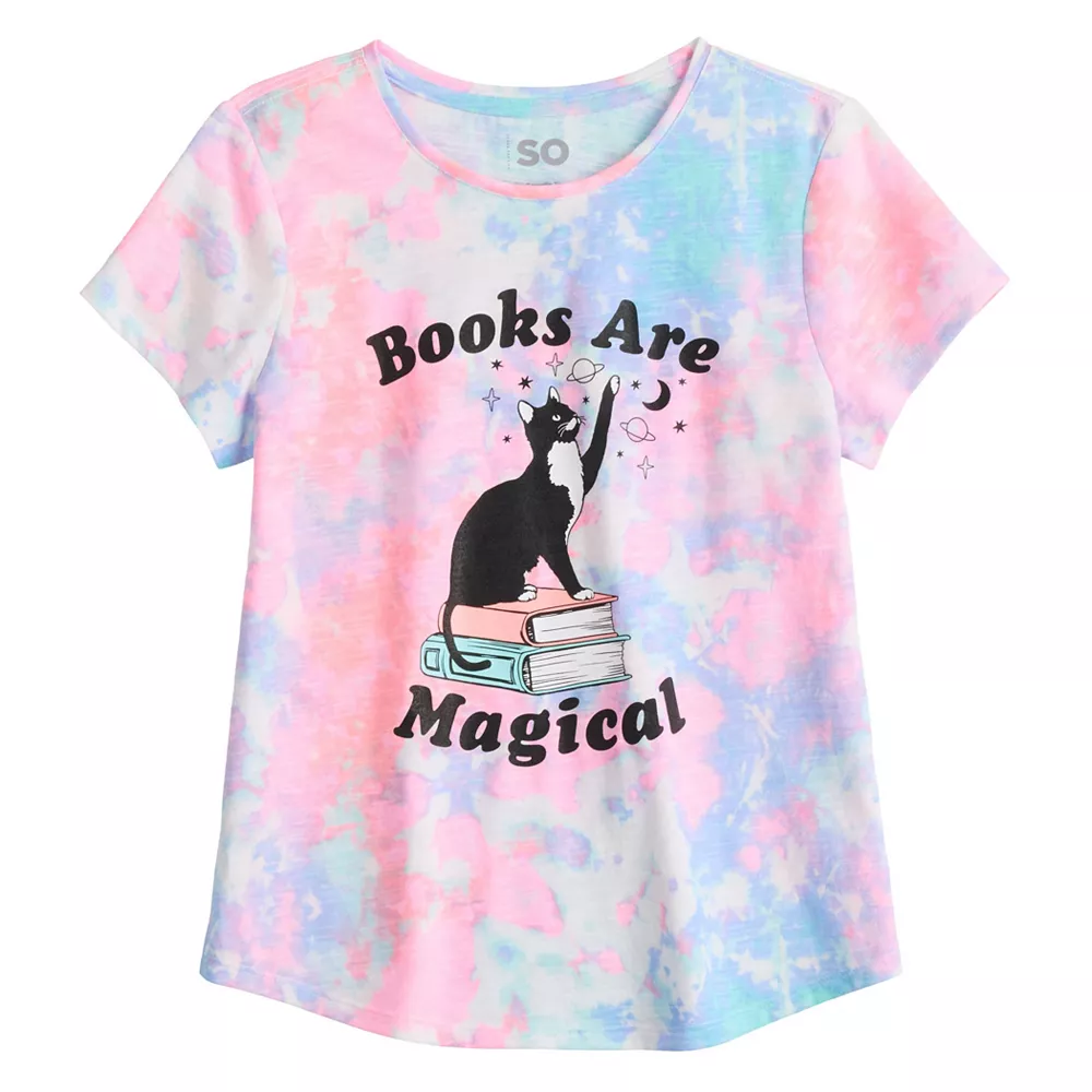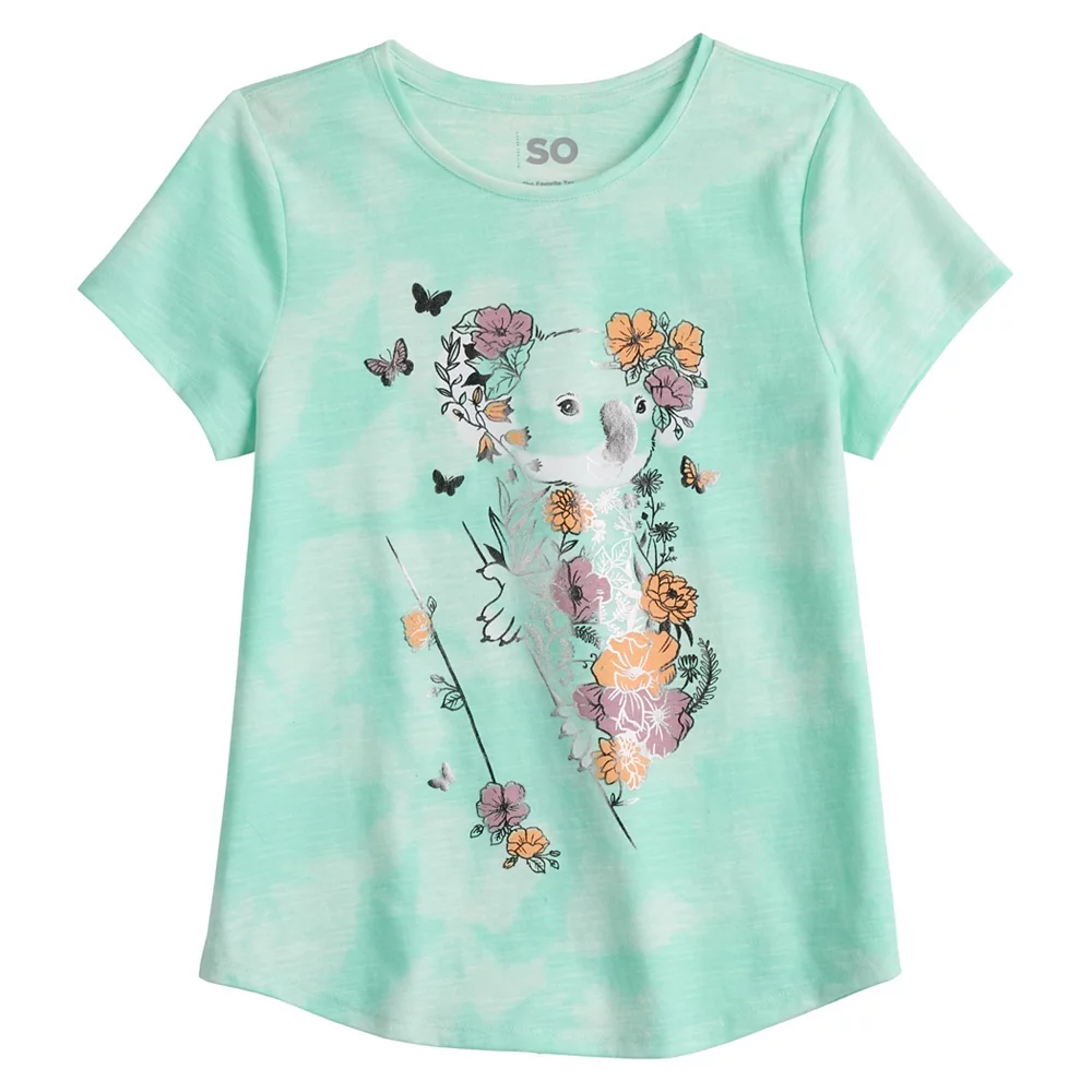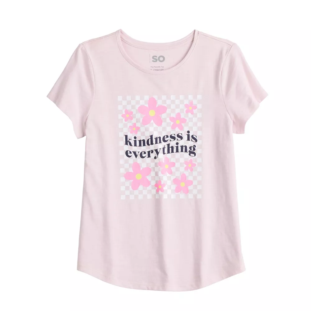 Give her a fun look for casual warm-weather days with this girls’ graphic tee from SO.