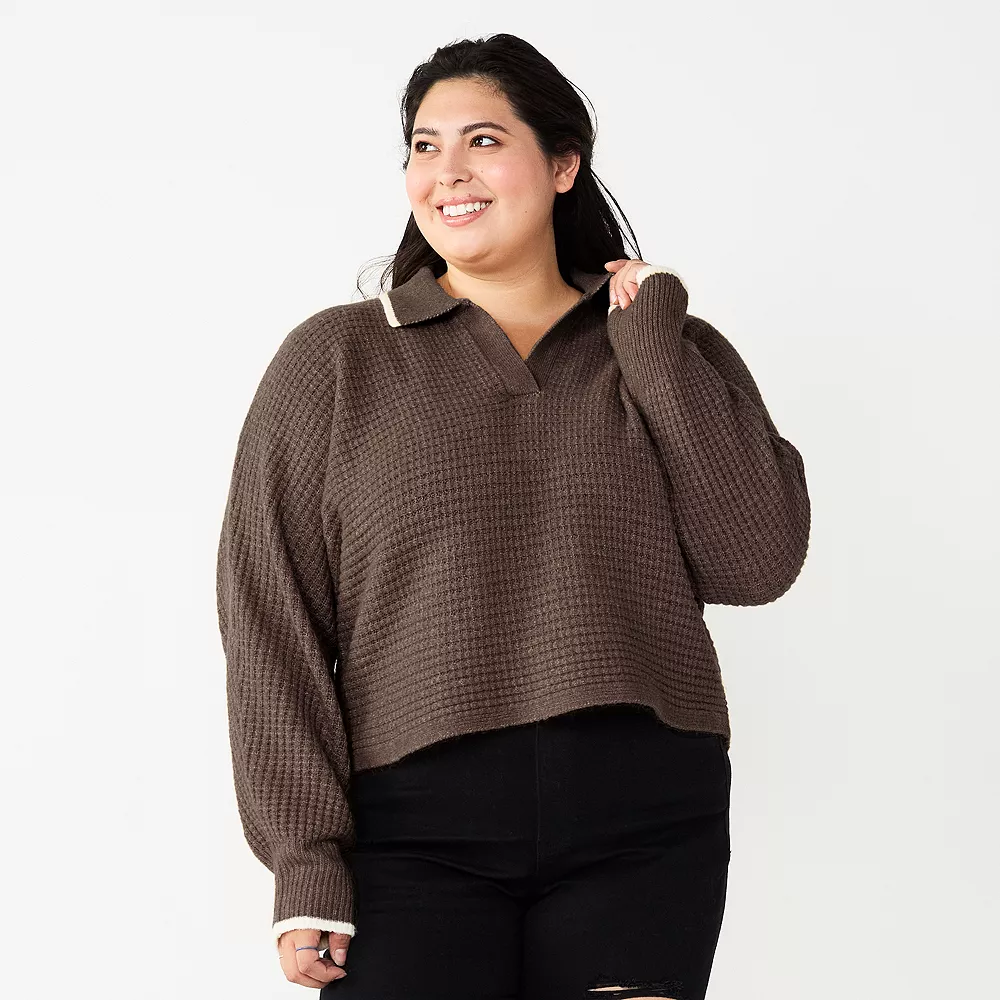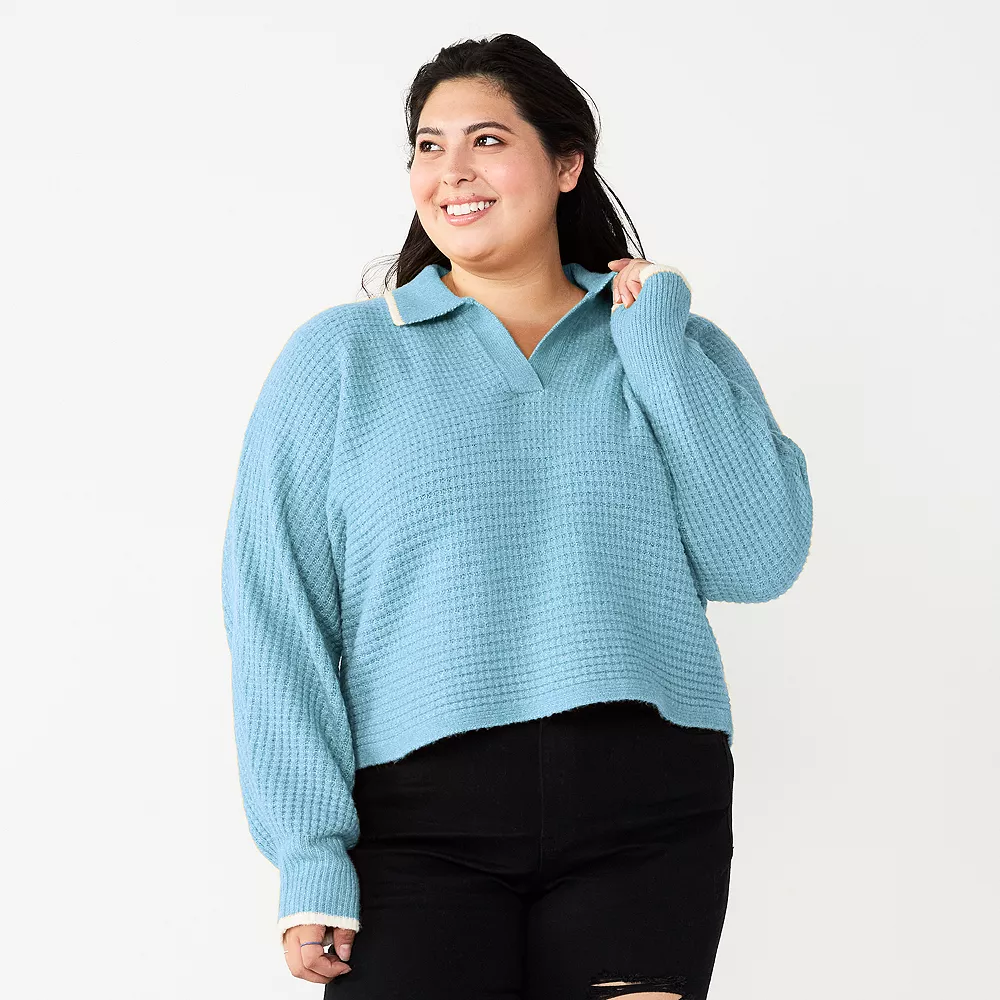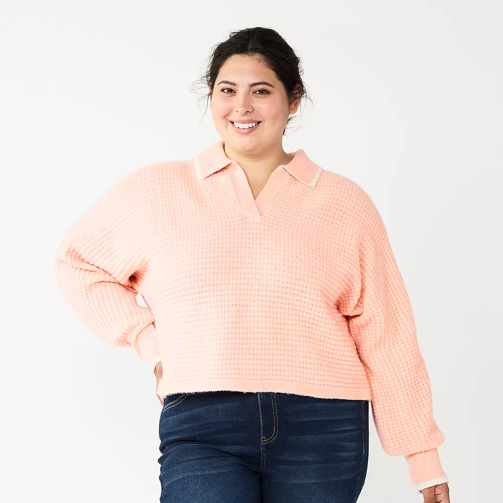 This juniors’ SO solid sweater gives you a cute, fashion-forward look all while keeping you comfy and warm.
