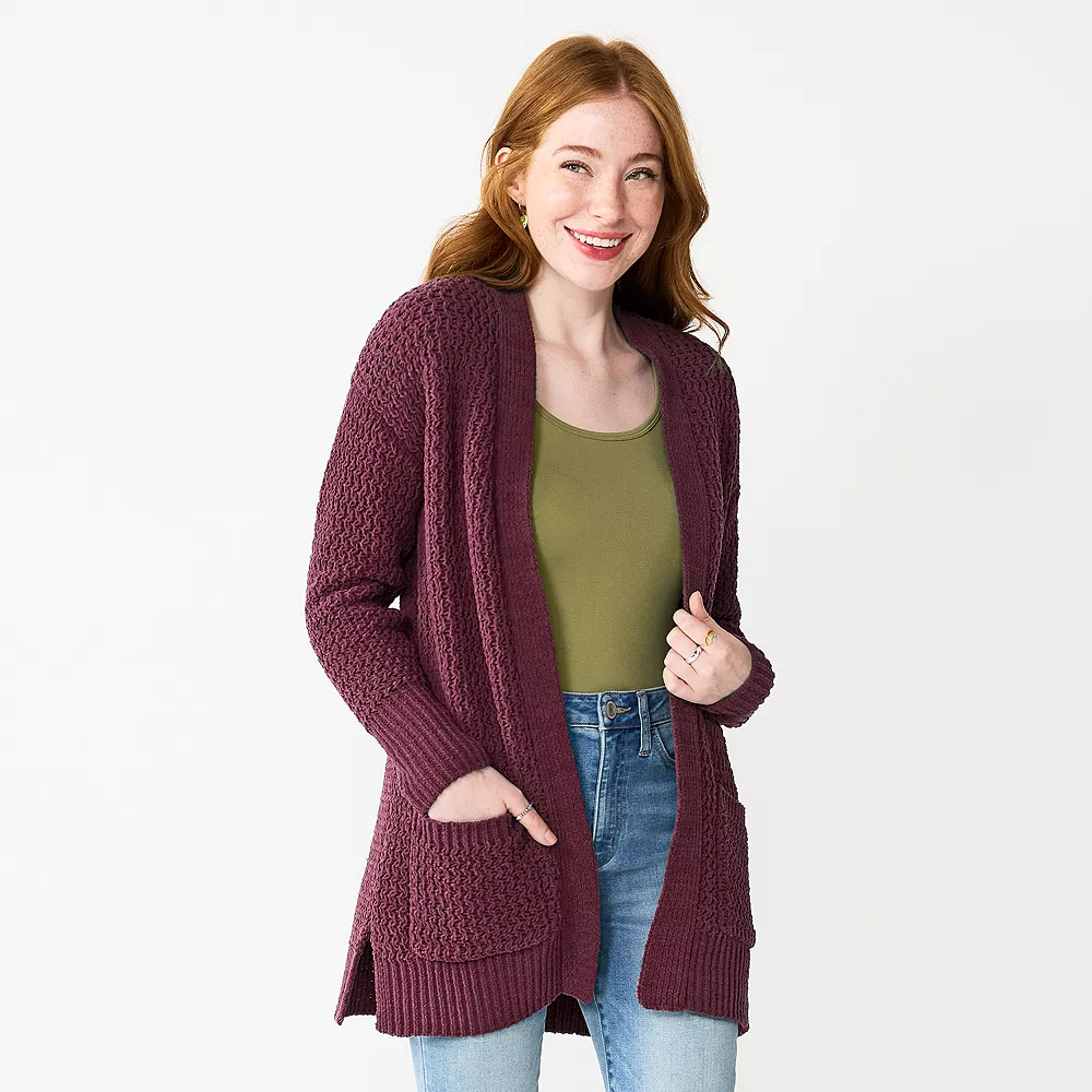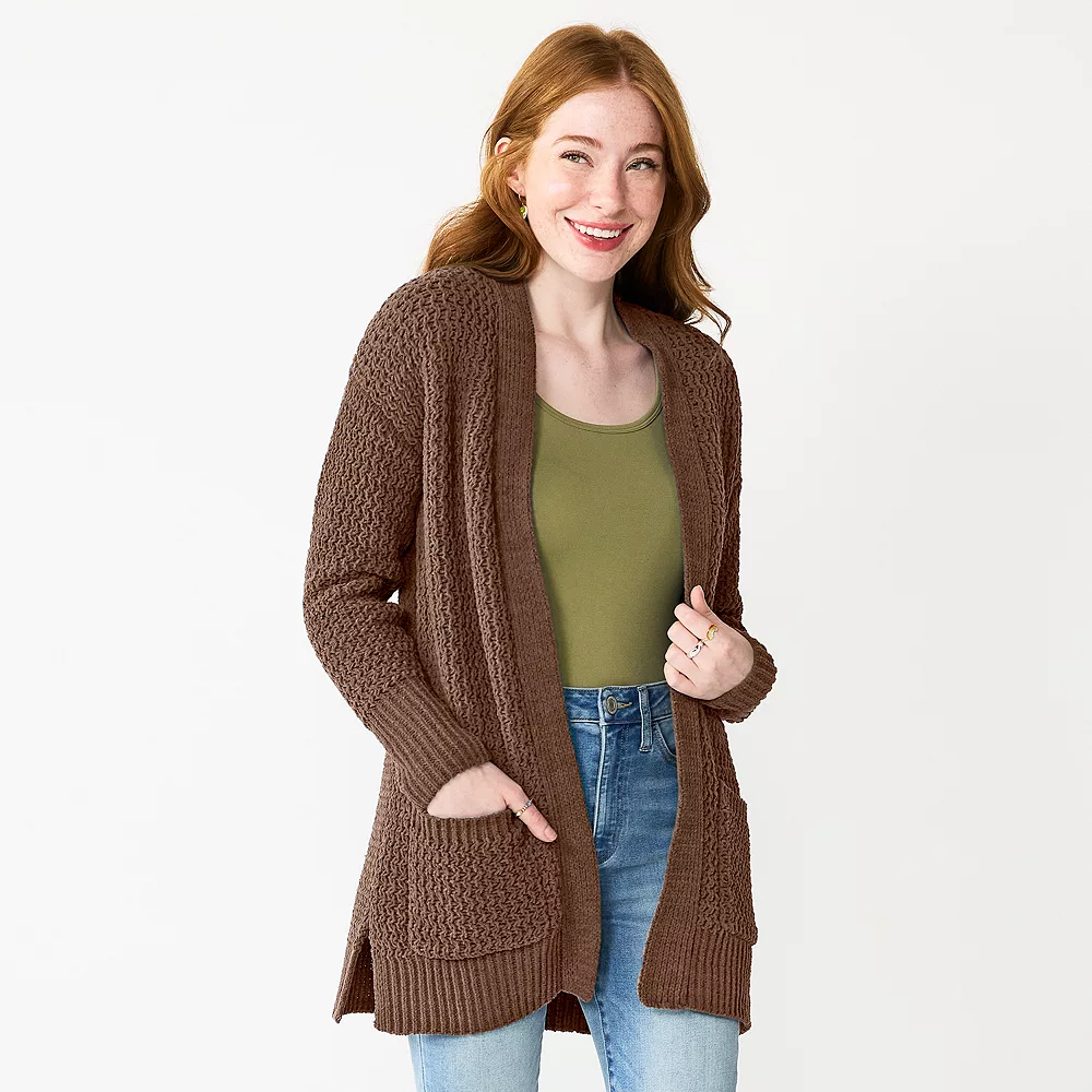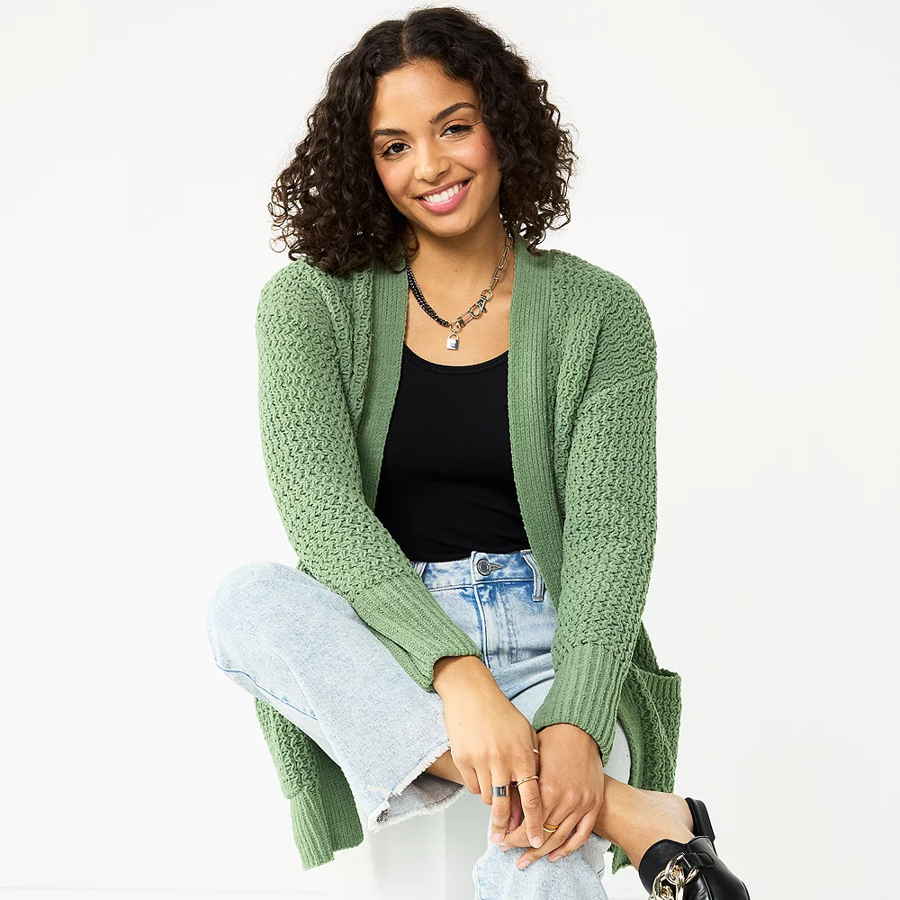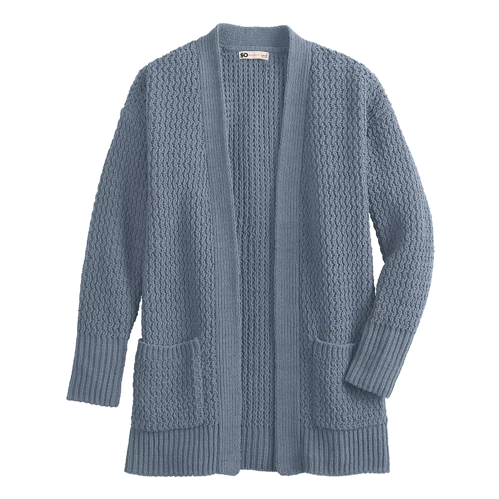 Stay warm and stylish this season with this cute open stitch juniors’ cardigan from SO.