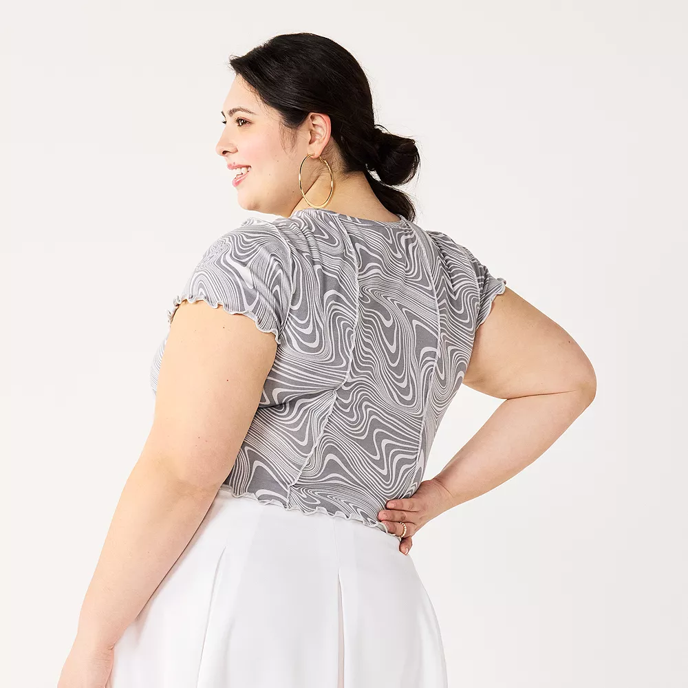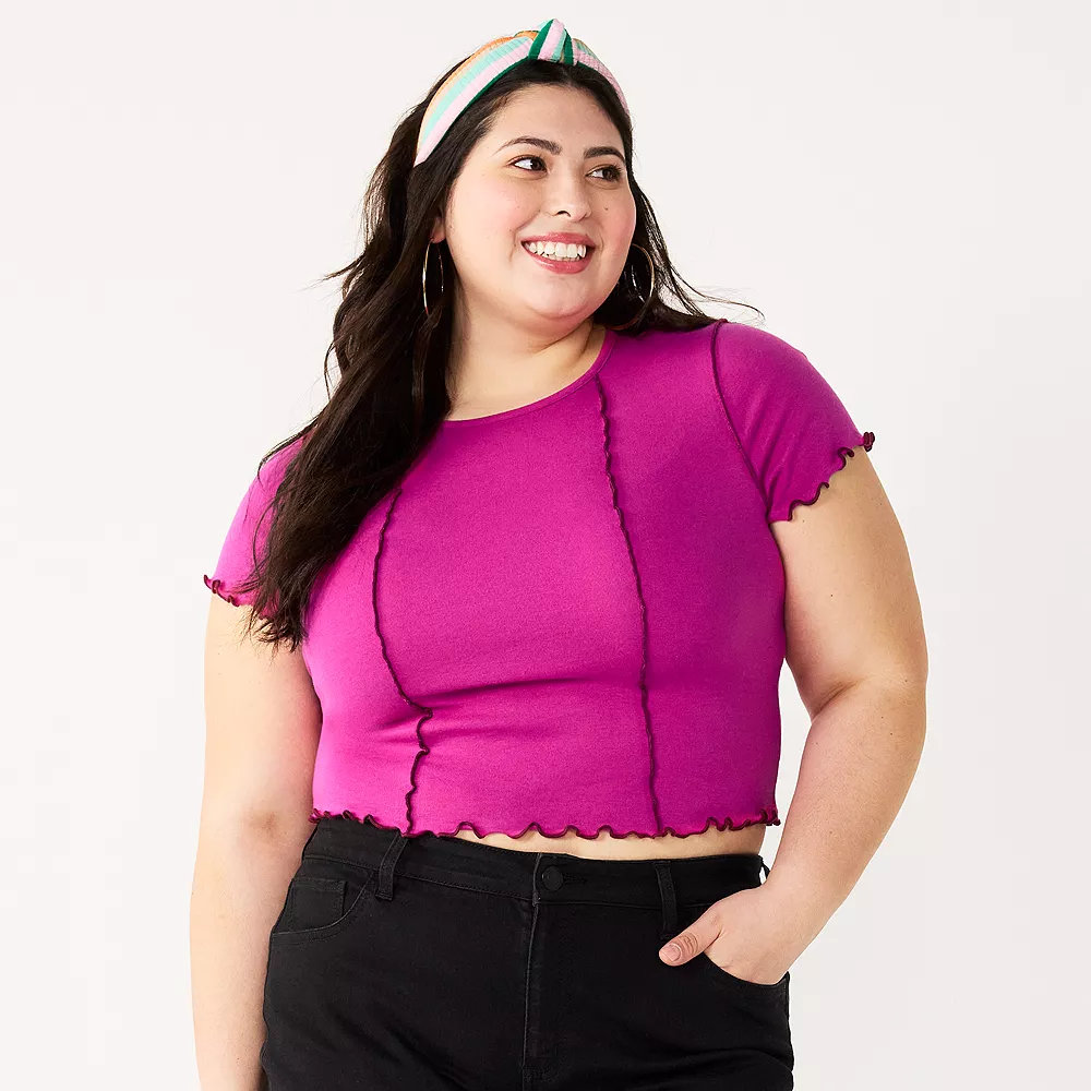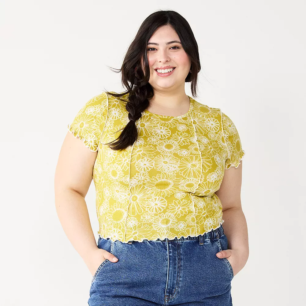 Stylish vertical seams bring a chic edge to this juniors’ short sleeve tee from SO.