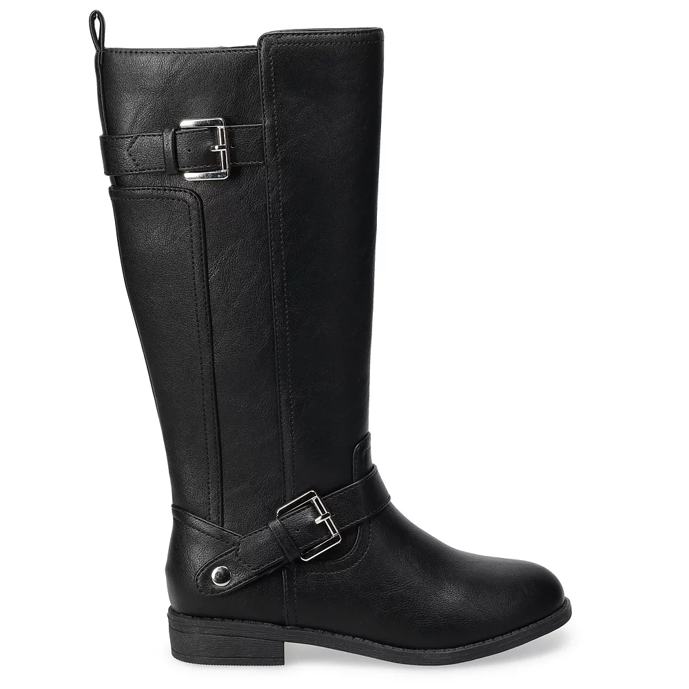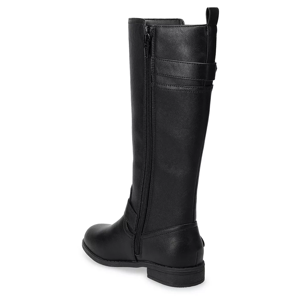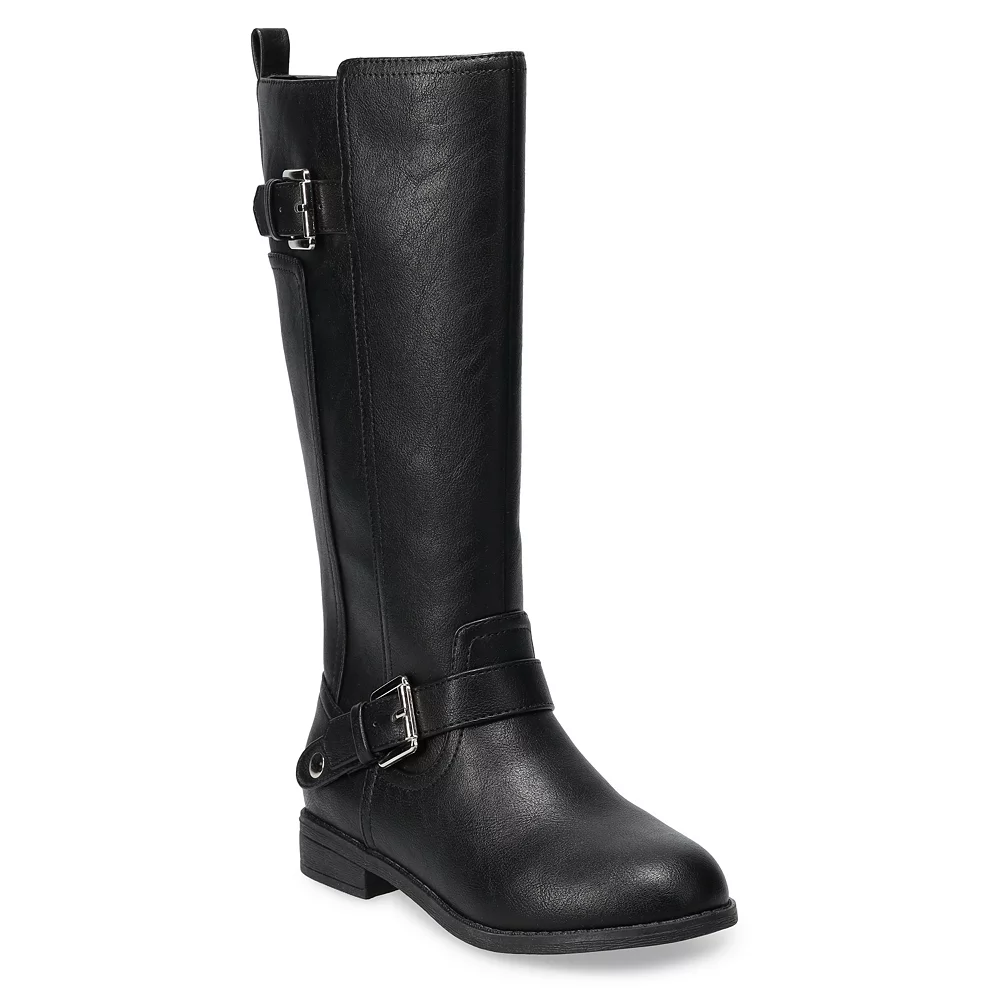 She’ll love the comfort and effortless style of these SO Camilaa girls’ riding boots.