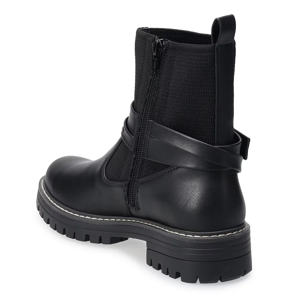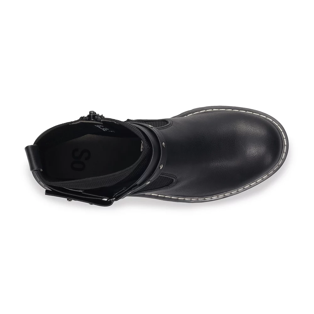 Add to your edgy style with these SO Clarinet women’s moto boots.